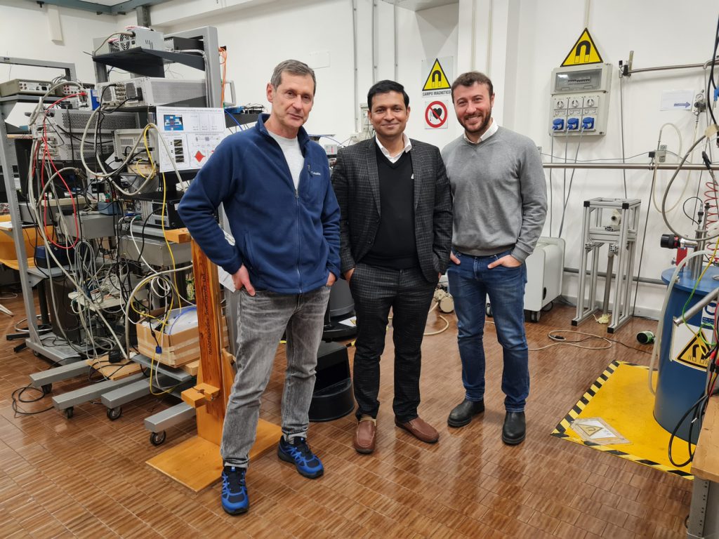 Christmas Lunch 2022 with Giuseppe Cantarella and Francesco Rossella. The lab is in a superimpostion of open and closed eyes states (plus other different non-equlibrium perturbations). The demonstration of its fermionic or bosonic nature and of the normalization factors is left as an exercise to the visitor.
